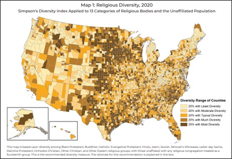 Religious Diversity in the United States is one of many studies that have been made based on the 2020 U.S. Religion Census. See many of the others here.